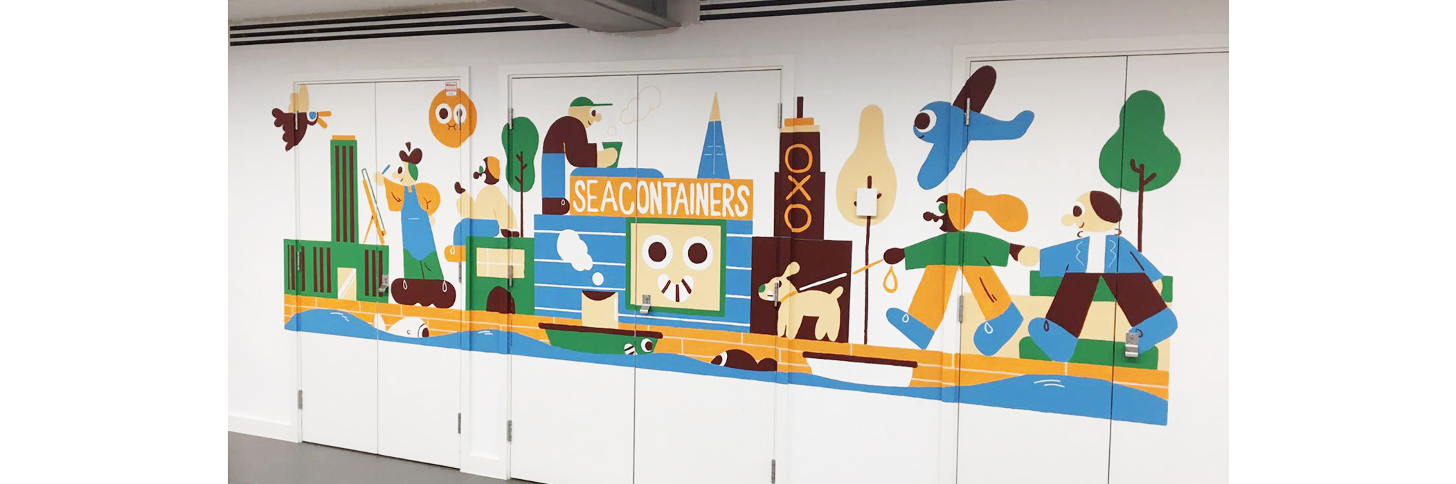 A mural design for Wavemaker offices in Southwark, London. Painted by HighRise murals.